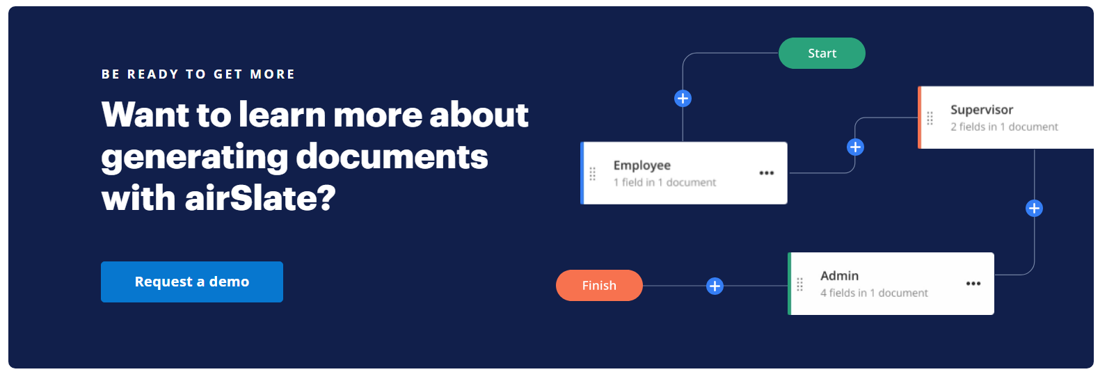 Integrate document generation into any workflow . AUtomate workflow with easy to configure Bots. From document generation and workflow routing to sending reminders, any workflow can be configured in minutes. No need to code APIs or integrate additional services.